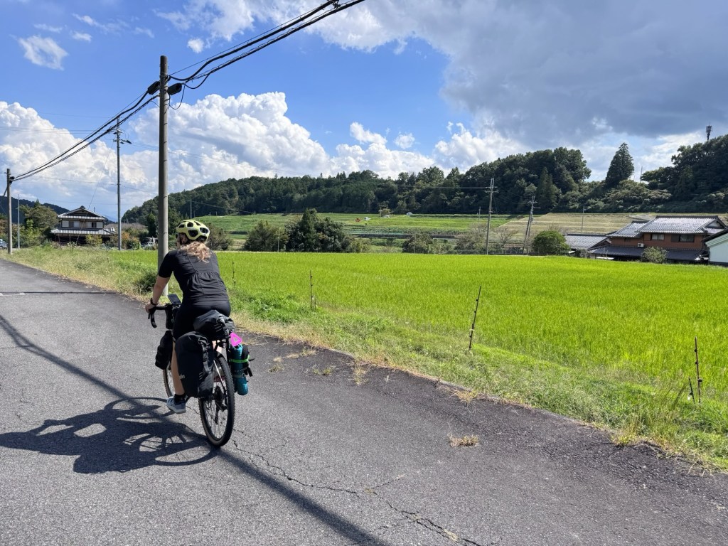 Heute geht geht es endlich los. Wir packen unsere Räder und verlassen Kyoto nach Norden, zunächst entlang des Flusses Kamo, später auf Nebenstraßen. Die Landschaft ist hügelig, saftig grün und es gibt viele dichte Wälder.