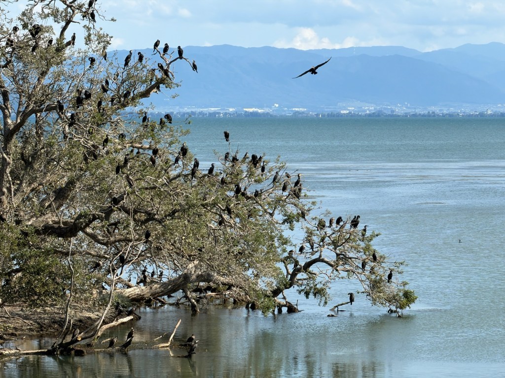 Gegen Mittag erreichen wir den Biwa See. Er ist über 60 km lang und sein Westufer begleitet uns den Rest des Tages. Der Biwa See wirkt sehr rau und irgendwie mystisch. Geologischen Forschungen zufolge entstand der See vor etwa 4 Millionen Jahren. Er ist vermutlich der drittälteste See der Welt.