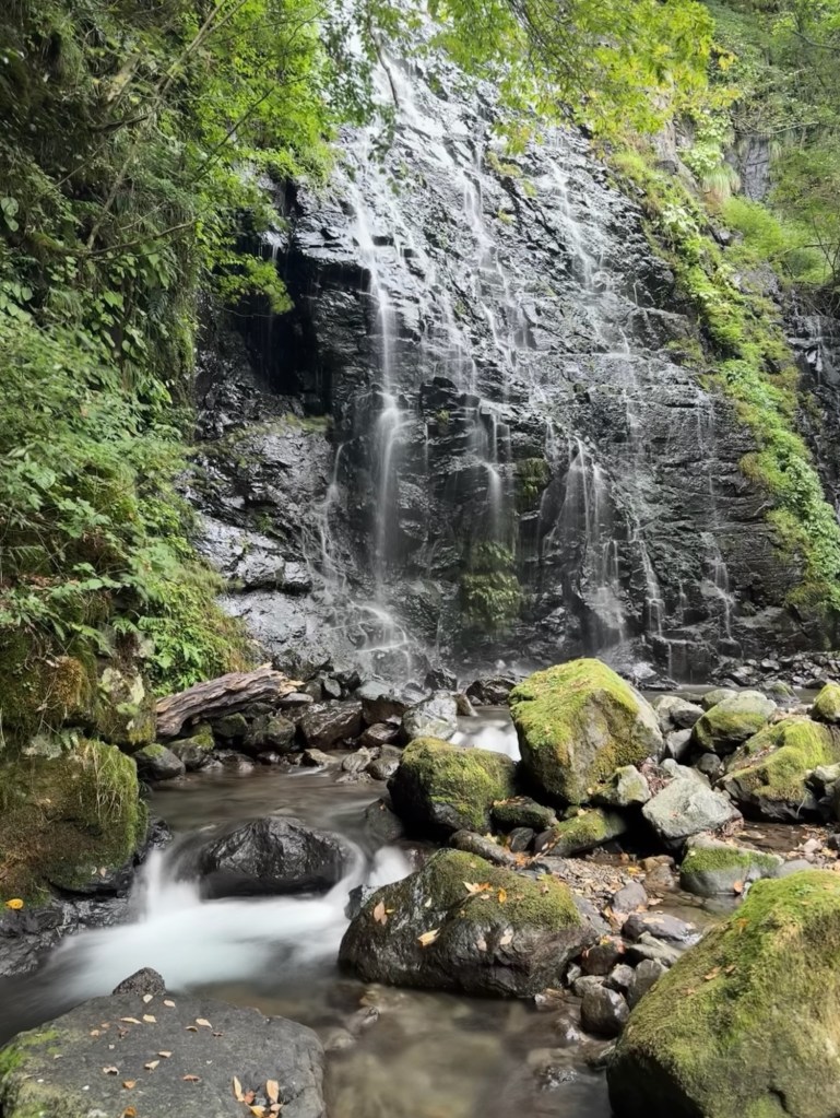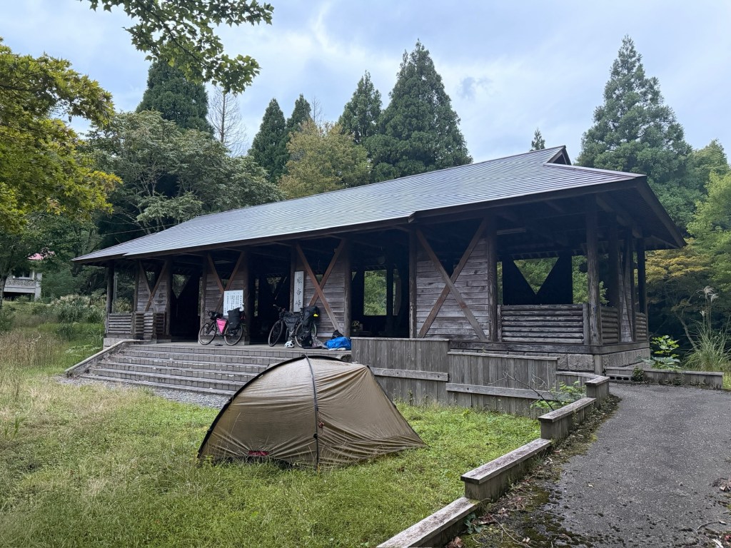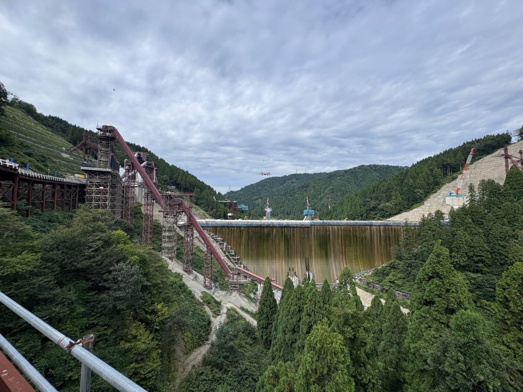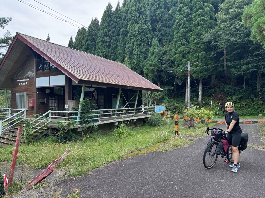 Nach dem Mittagessen in Ikeda kommen wir an der größten Baustelle vorbei die wir je gesehen haben. Gebaut wird an einem riesigen Staudamm, samt neuen Straßen und Brücken. Die Baustelle ist derartig groß, dass sie ein eine eigene Aussichtsplattform hat. Wir fahren im Talboden weiter, der dann irgendwann mal geflutet werden wird. Nachdem wir die Baustelle passiert haben, haben wir die Straße komplett für uns allein, samt eines schönen Wasserfalls. Überhaupt ist bisher noch kein Tag vergangen, an dem wir nicht mindestens einmal eine verlassene Straße befahren. Es wirkt so, als wären irgendwann mal viele neue Straßen und Tunnel gebaut worden und die alten sind jetzt wenig genutzt und dem Verfall preisgegeben. Heute existiert der anvisierte Zeltplatz, aber: Er ist komplett verlassen und wirkt so, als sei er schon seit mindestens 20 Jahren nicht mehr in Betrieb. Trotzdem ist alles sehr sauber, es liegt kein bisschen Müll herum, alles wurde aufgeräumt zurückgelassen. Skurril ist, dass um 17 Uhr aus Lautsprechern plötzlich Musik über den Platz schallt. Wir recherchieren, was es mit den verlassenen Zeltplätzen auf sich hat, und erfahren dass es auch etwas mit der schnell alternden Gesellschaft zu tun haben könnte und mit dem Umstand, dass der Campingboom in Japan in der 90er seinen Höhepunkt hatte. Wir beschliessen zu bleiben. Hier in der Gegend wird zwar nicht vor Bären gewarnt aber trotzdem lagern wir diesmal alle Lebensmittel und alles was riecht in einer alten Telefonzelle vor dem Campingplatz. So schlafen wir sicher entspannter.