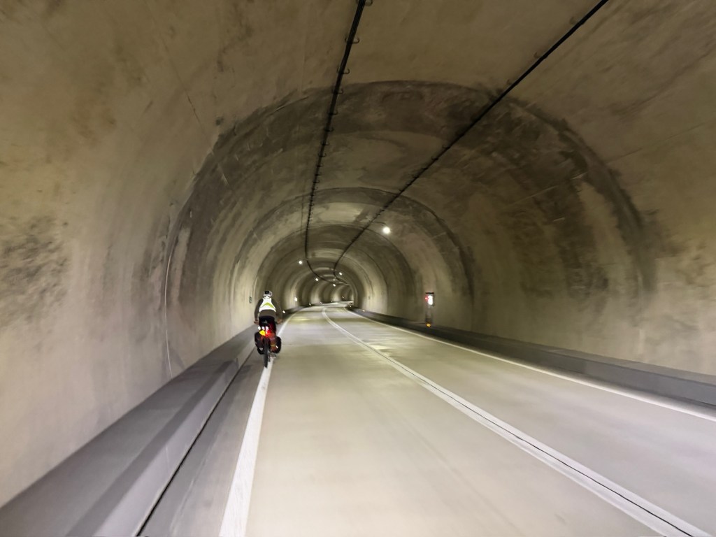 Direkt am Morgen fahren wir durch einen 4 km langen Tunnel unter dem Mt. Kanmuri hindurch. Das klingt schlimmer als es letztendlich ist, der Tunnel ist modern, hell beleuchtet, es geht leicht bergab und es gibt kaum Verkehr.