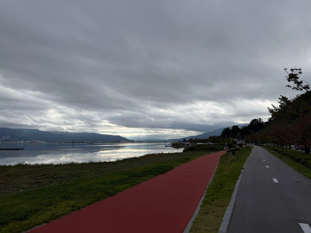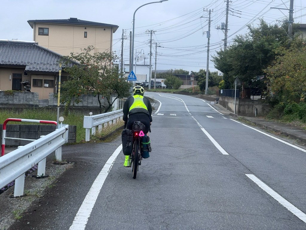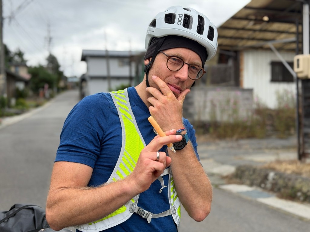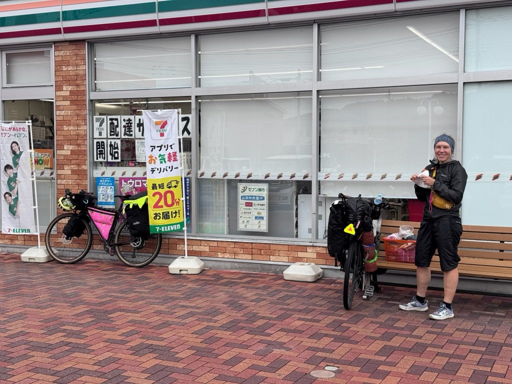 Heute ist es wirklich zäh. Der Himmel ist grau und Mittags setzt leichter Nieselregen ein. Landschaftlich gibt es nicht viel zu sehen, gefühlt fahren wir den ganzen Tag durch ein Industriegebiet. Unser Highlight des Tages ist der nachmittägliche Stop am Konbini. Wie die Heuschrecken fallen wir über die warme Theke und das Süßigkeiten Regal her. Das tut gut!