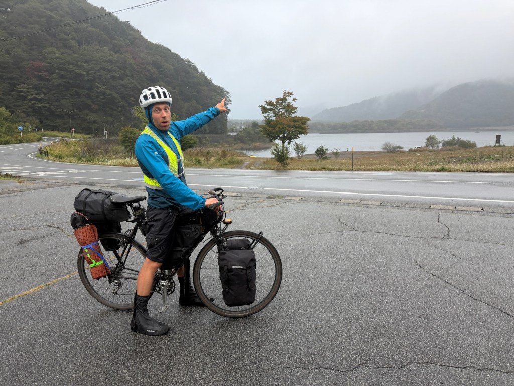 Wir finden einen süßen Platz am See für unser Zelt. Bei guter Sicht müssten wir einen super Blick auf den Fuji haben, wir hoffen, dass es morgen aufklart.
